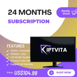 Experience year-long entertainment with the 4K Live IPTV 24 Months Subscription for 3 Devices. Perfect for families or shared living spaces, this plan offers extensive IPTV access for up to three devices. Explore our 36-hour free trial to evaluate the service quality.